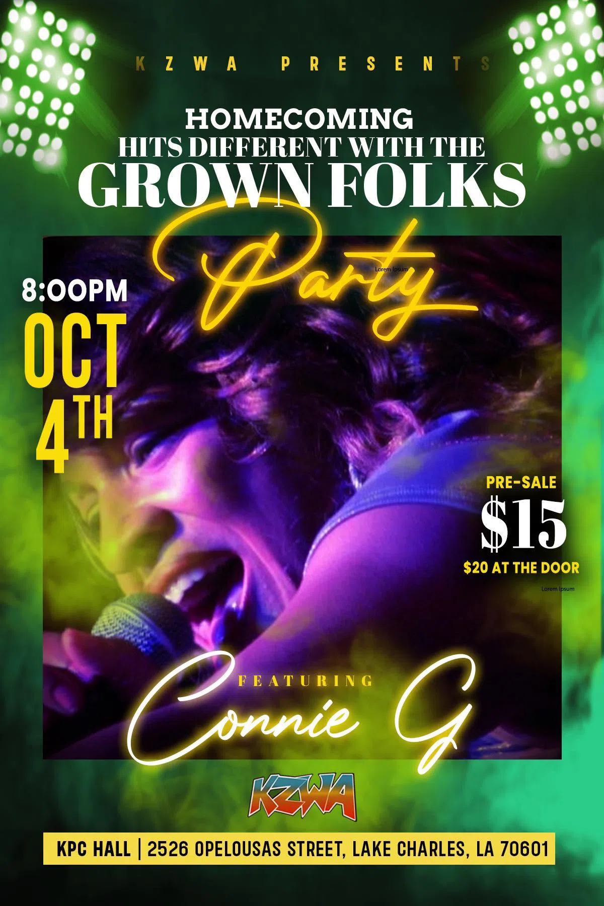 #GrownFolksParty #HomecomingVibes #LakeCharlesEvents #ConnieG #KZWA #TurnUpWithUs